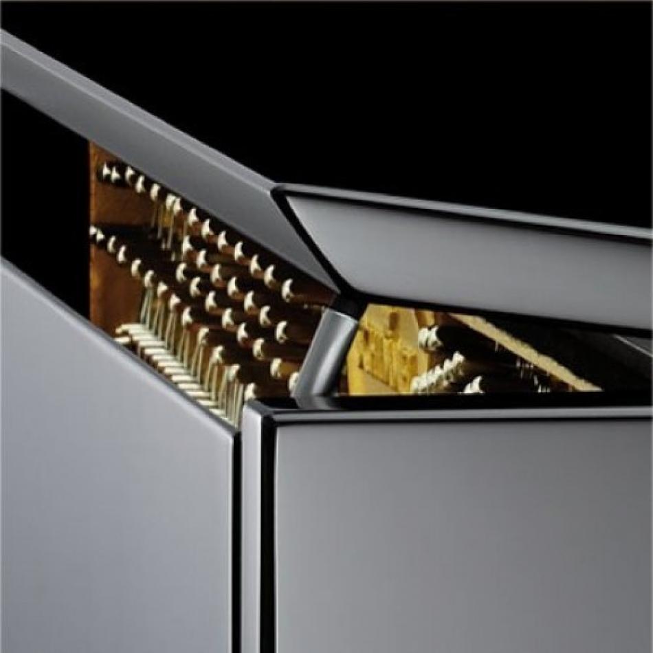 Neue Fertigungstechniken und Materialien – wie das als Kontrapunkt zum polierten Klavierlack eingesetzte Aluminium – unterstreichen die wesentlichen Elemente des Instruments.
