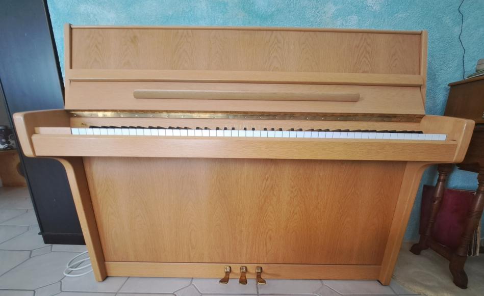 Ich habe das Klavier 2020 in einem Pianohaus in Freiburg gekauft, dort wurde es zuvor technisch und optisch geprüft und überholt, gereinigt, die Mechanik überprüft und nachreguliert, die Dämmung und Pedalanlage kontrolliert, nachjustiert und gestimmt. Außerdem wurden die Hammerköpfe leicht abgezogen, auf den Saitenchor ausgerichtet und intoniert.
