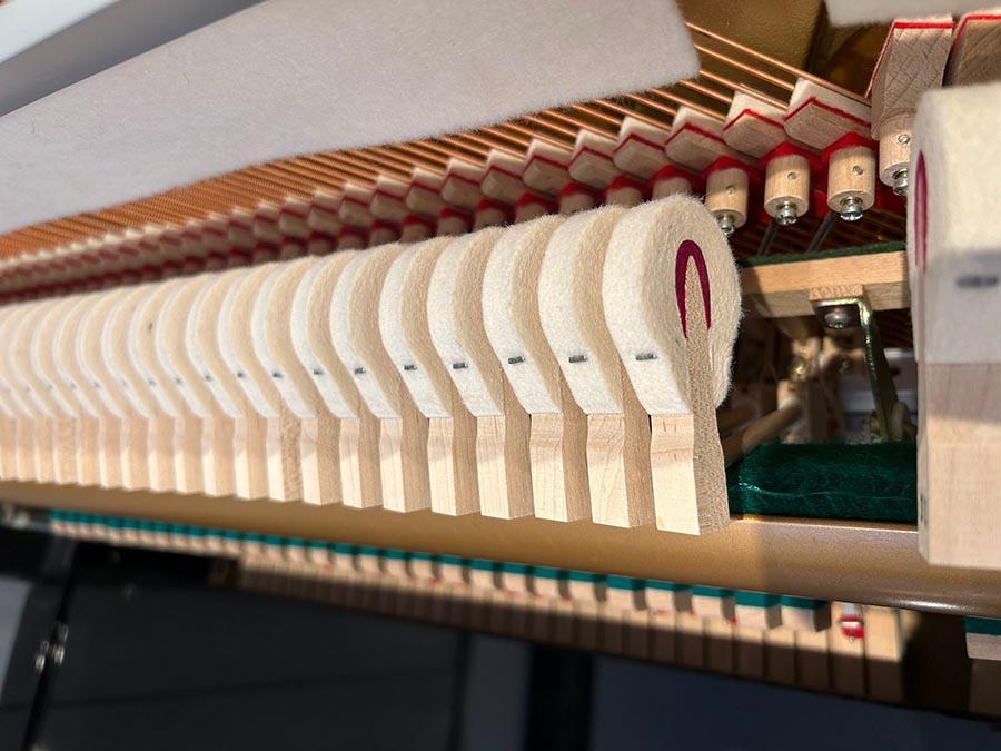 In unserer Fachwerkstatt wurde die Mechanik sorgfältig und genau reguliert. Die Hammerköpfe wurden intoniert.