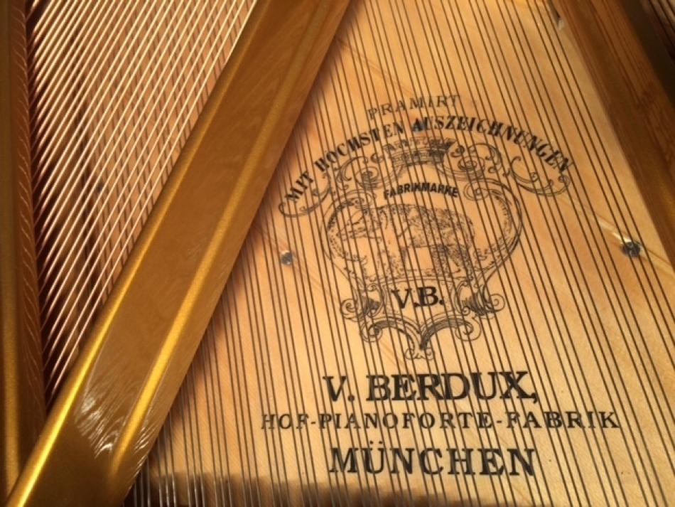 Der hier angebotene Berdux Flügel (Modell 175) wurde ca. 1913 in der Münchner V. Berdux Hof-Pianofabrik gefertigt. Der Flügel verfügt über die legendäre Herrburger & Schwander Paris -Flügelmechanik, die bei einigen Fachleuten als die weltweit beste Mechanik gilt. Als typisches Premium-Instrument der „guten alten Zeit“ präsentiert sich dieser Flügel in einem klaren, zeitlosen Erscheinungsbild sowie mit einem wunderschönen, altmodisch – feinen und singenden Klang. Ein perfektes Instrument für alle diejenigen, welche mit dem „modernen“ Yamaha, Kawai & Co. – Klang nichts anfangen können.
