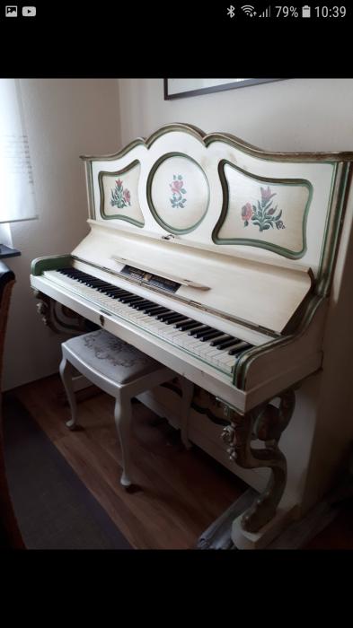 Das Klavier ist bespielbar, nicht alle Töne sind einwandfrei. Passender Hocker wird gerne beim Kauf mit abgegeben. Das Klavier ist aus dem 19. Jahrhundert