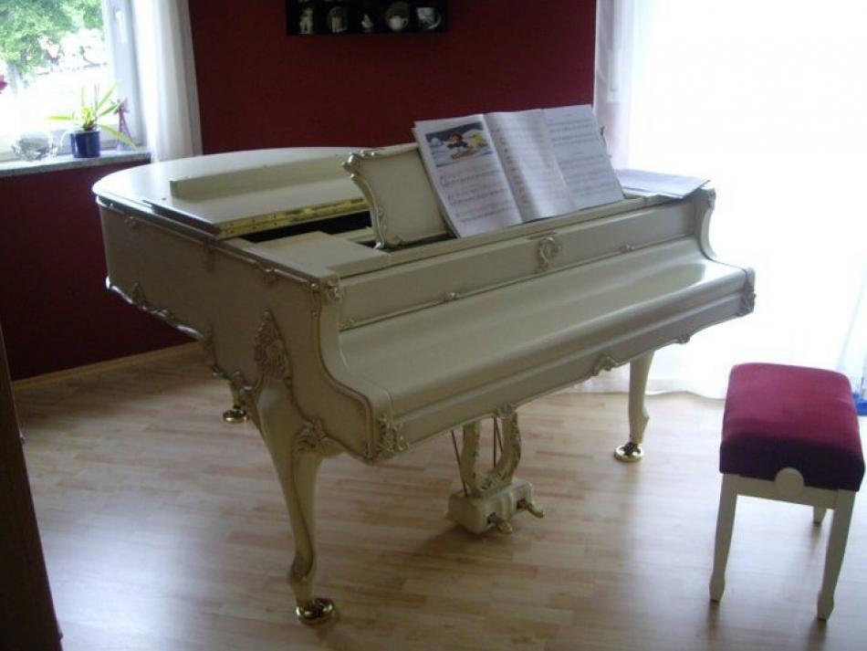 Ich verkaufe eine echte Rarität. Laut Firma Feurich existieren in ganz Europa nur 3 - 5 solcher Flügel. Also ein echtes Schmuck- und Sammlerstück. Der Flügel ist 175 cm lang und Baujahr 1975. Der Flügel besitzt eine sehr haltbare Renner-Mechanik. Der Klang ist für die Größe des Flügels extrem rein und schön. Er wurde vor 5 Jahren überholt und ist so gut wie neu und unversehrt. Er wurde immer bestens gepflegt und gewartet. Die cremeweiße Schleiflack-Oberfläche passt zu jedem Möbelstück. Die passende Klavierbank ist selbstverständlich auch dabei. Der Flügel kann selbstverständlich vor Ort bei mir in Erbendorf besichtigt werden. Ansonsten ist der Klavierbauer, der ihn...