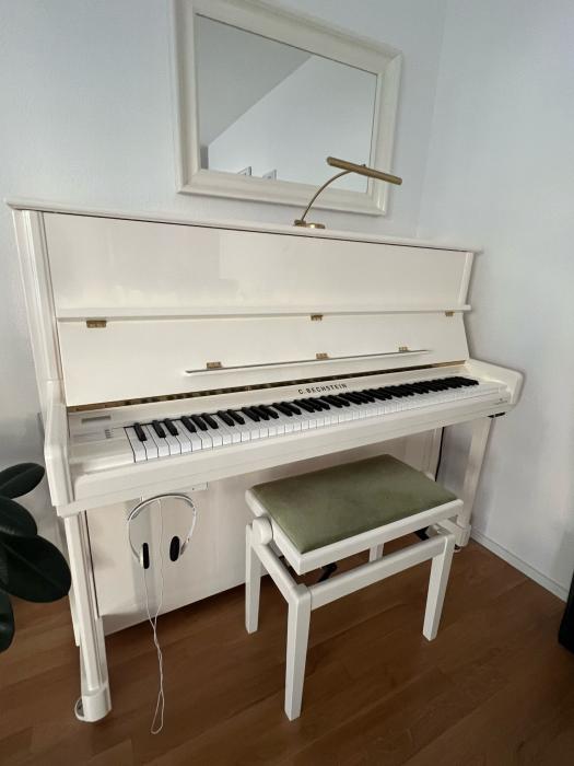 Sehr schöner Klang, halbjährlich gestimmt, mit Befeuchtungssystem, aus 1. Hand. Es lässt sich zu jeder Tages- und Nachtzeit dank VarioSystem spielen, ohne Nachbarn zu stören.Wird nun zu wenig gespielt, da Bechstein Flügel im Haus. Preis inkl. Stuhl und Lampe.
