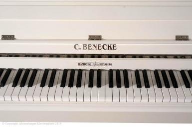 Neues Klavier! Die C. Benecke Klaviermechaniken, sind wie ihr berühmtes Vorbild, aus feinem, gut abgelagertem, massivem Weissbuchenholz französischer Herkunft, nach deutschem Vorbild, in traditioneller Weise gefertigt.Die Hammerkopffilze und sonstige Tücher und Filze entsprechen den bis dato verfügbaren guten, bis sehr guten Qualitäten. Die komplette Ausarbeitung, Endregulierung und Intonation in unseren Ahrensburger Werkstätten machen dieses Klavier, auch bei professionellen Musikern, zu einem beliebten Instrument ,nicht zuletzt wegen seiner guten Stimmhaltung, der ausgewogenen und repetierfreudigen Spielart, sowie des voluminösen Klanges. Das Seitenmaterial wird von der Firma Röslau aus Deutschland geliefert.