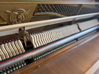 Klanglich bietet das Euterpe Klavier einen klaren, ausgewogenen Ton mit gut definierten Höhen, harmonischen Mitten und einem tragfähigen Bass. Die Mechanik sorgt für eine angenehme Ansprache und präzise Kontrolle – ideal für Anfänger, fortgeschrittene Spieler oder den Einsatz in Musikschulen.