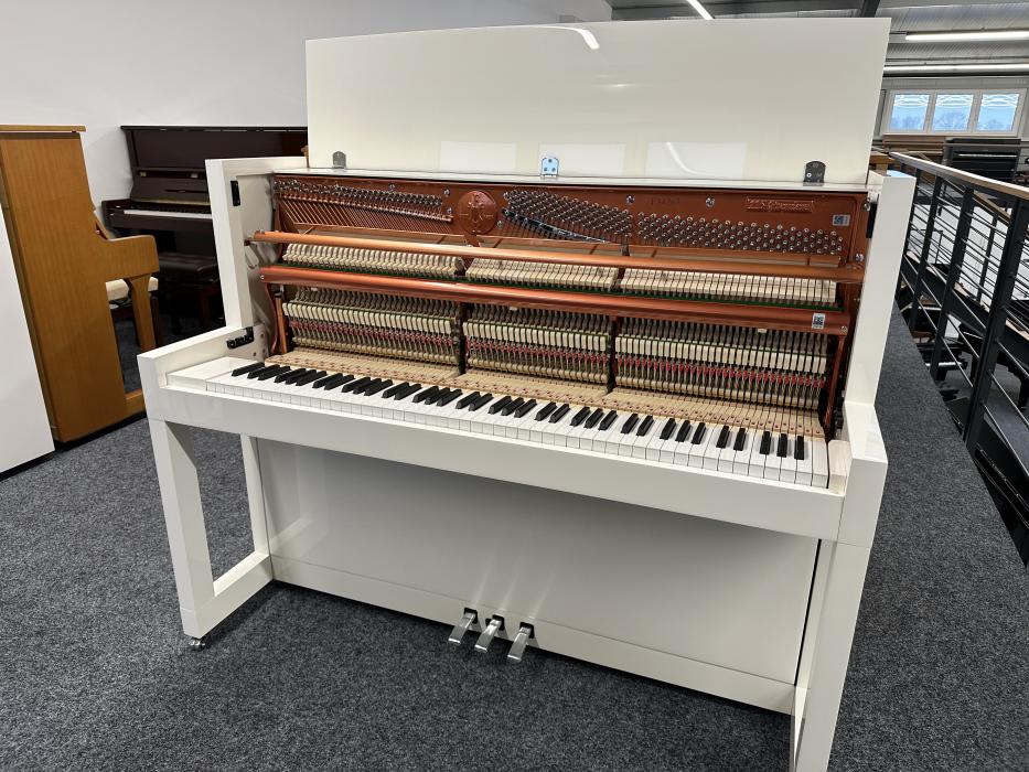 Dank zahlreicher innovativer Design-Features entfaltet das Mod. 115 – Premiere für ein Instrument dieser Größe einen einmalig vollen Klang. Die Klangfarben des Pianos im ikonischen Bauhaus-Stil reichen von tief-dunkel bis klar-hell und erreichen Klänge von weicher Wärme bis zu klarer Brillanz. Der angenehme Widerstand beim...