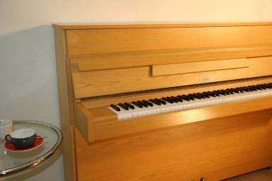 Klavier gebraucht Hellas-Piano, Finnland, Eiche hell mit Leisespielpedal, wenig gespielt, neuwertig, Werkstatt geprüft und überarbeitet.