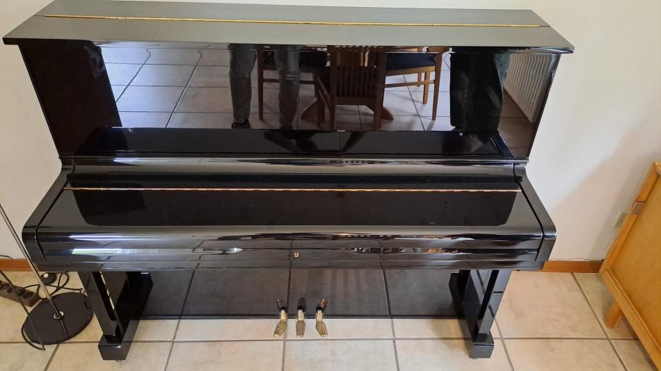Das Klavier wurde stets pfleglich behandelt und regelmäßig gestimmt, sodass es sich in einem hervorragenden Zustand befindet. Es passt perfekt in Wohnzimmer, Musikzimmer oder Studio und wird sicherlich zum Blickfang in jedem Raum.