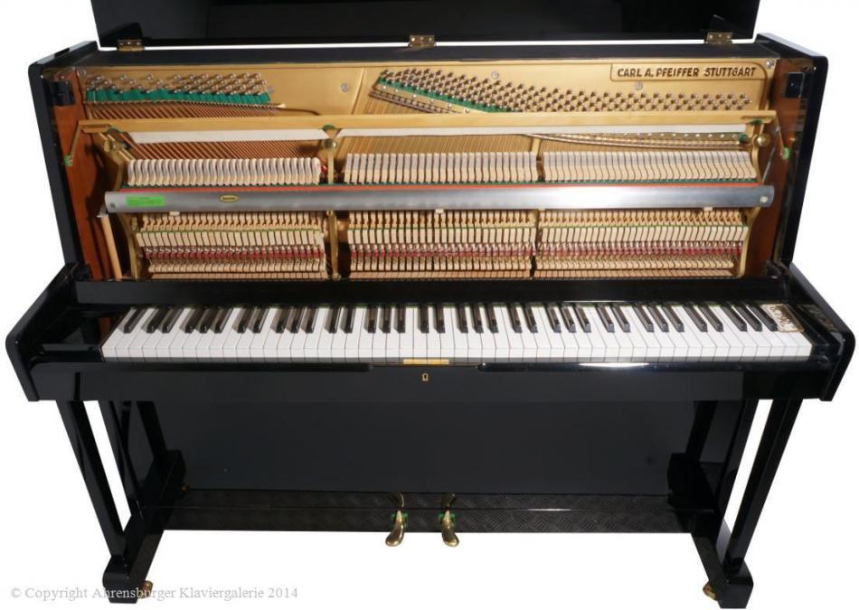 Carl A. Pfeiffer Klaviere aus Stuttgart gehörten in den siebziger Jahren zu den beliebtesten Instrumenten bei professionellen Musikern. Der Inhaber dieses alt ehrwürdigen Klavierbauunternehmens hat auch viele wissenschaftlichen Schriften zum Klavierbau veröffentlich. Insbesondere das Klavier Modell 115 glänzt durch seinen weit gefächerten spektral- harmonischen Obertonaufbau in allen Lagen, sowie einem äußerst präzisen und geschmeidigen Spielgefühl. Das theoretische und praktische Wissen welches die Herstellung dieser hervorragenden Instrumente in den Stuttgarter Werkstätten ermöglichte, ist heute nur noch selten anzutreffen .