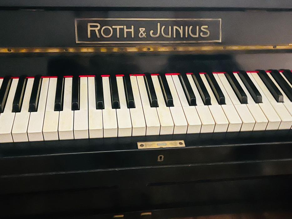 lange nicht gespieltes, leicht verstimmtes Klavier mit Gebrauchsspuren