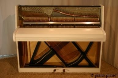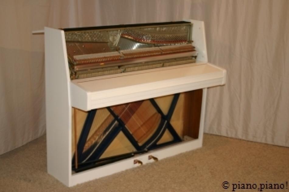 Dieses Klavier wurde von unserem erfahrenen Klavierbauer geprüft, reguliert und gestimmt. Das Instrument befindet sich in einem sehr guten Zustand.Farbe: weiss matt (neu lackiert)
