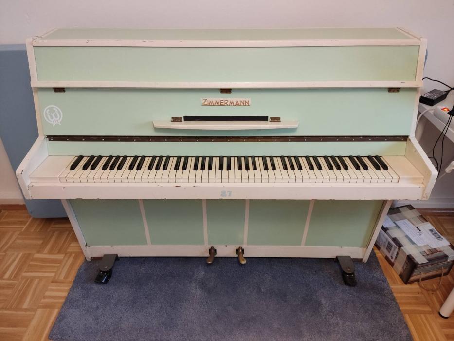 Klavier Zimmermann. Ich verkaufe es durch Umzug. Gerade gemalt. Mit Rädern zum leichteren Bewegen. Die letzte Note rechts funktioniert, bleibt aber manchmal unten. Im Allgemeinen ist es gut abgestimmt. Preis ist verhandelbar.