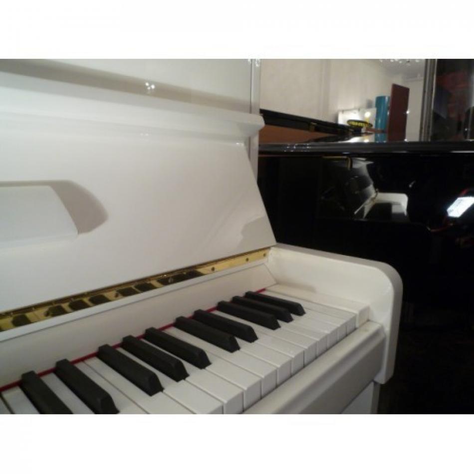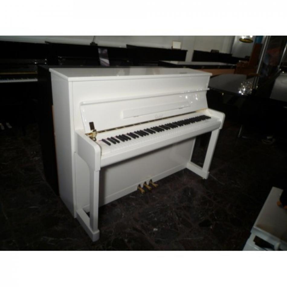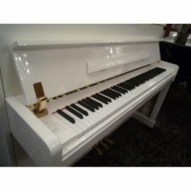 GUCKEL Markenklavier aus Offenbach, Modell T-114 in edlem weißem Klavierlack.