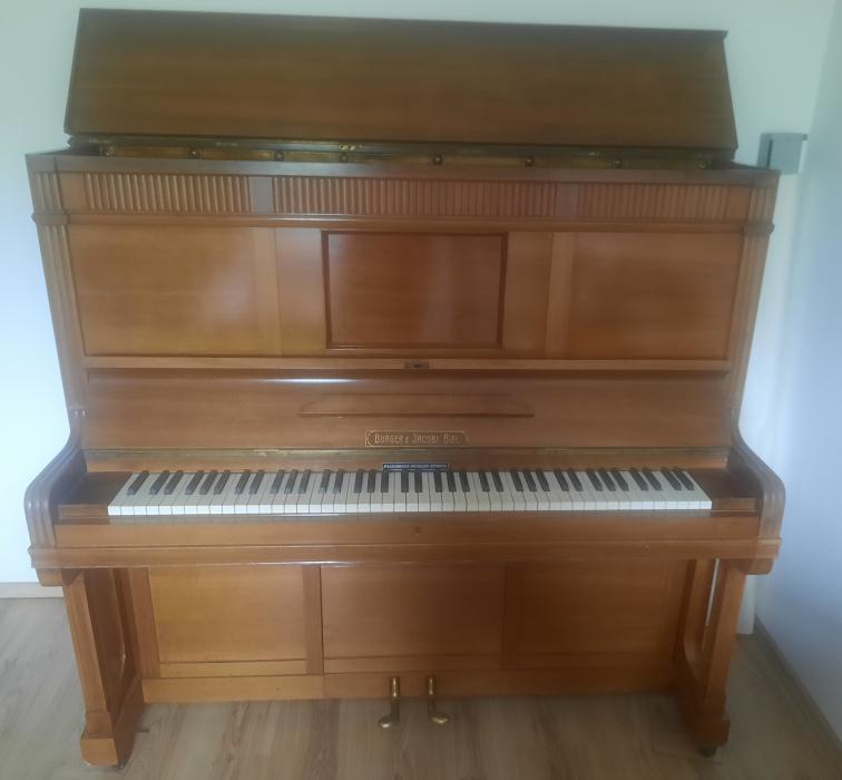 Das Klavier ist von 1883 des Herstellers Burger und Jacobi Biel. Das Besondere an dem Klavier ist, dass Johannes Brahms 1888 auf diesem Klavier gespielt hat. Er war begeistert von diesem Klavier.Es wurde von unserer Tochter bespielt und steht jetzt leider seit Jahren unbenutzt im Gästezimmer und das finden wir sehr schade. Deswegen haben wir uns entschieden, es jetzt doch zu verkaufen.