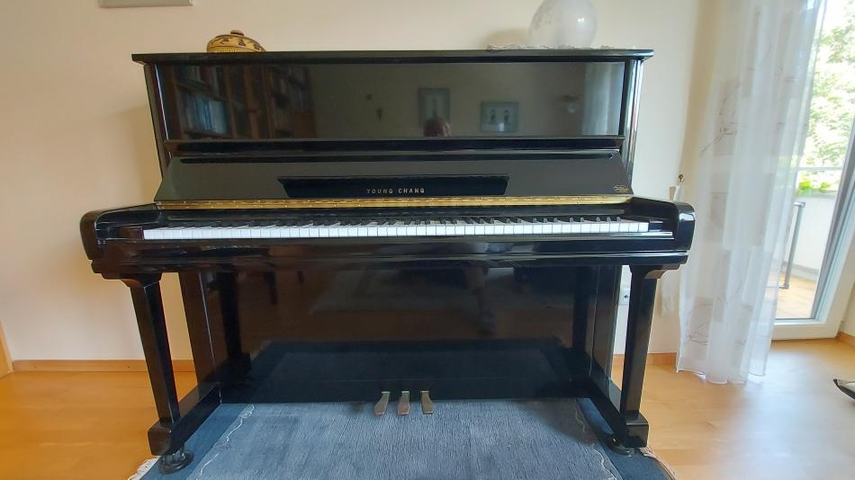 Young Chang Klavier in sehr gutem Zustand zu verkaufen: kleine Gebrauchsspuren; gekauft 2000 im Pianohaus Janos Augsburg, jetzt Königsbrunn;Maße: H 123 cm, B 144 cm, T 60 cm; schwarz poliert; perfektes Modell zum Einstieg