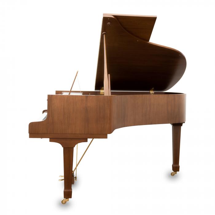 Optisch präsentiert sich der Blüthner Flügel besonders ansprechend im warmen, rötlichen Nussbaum mit schöner, ebenmäßiger Maserung und setzt damit im Raum ein harmonisches Highlight.
